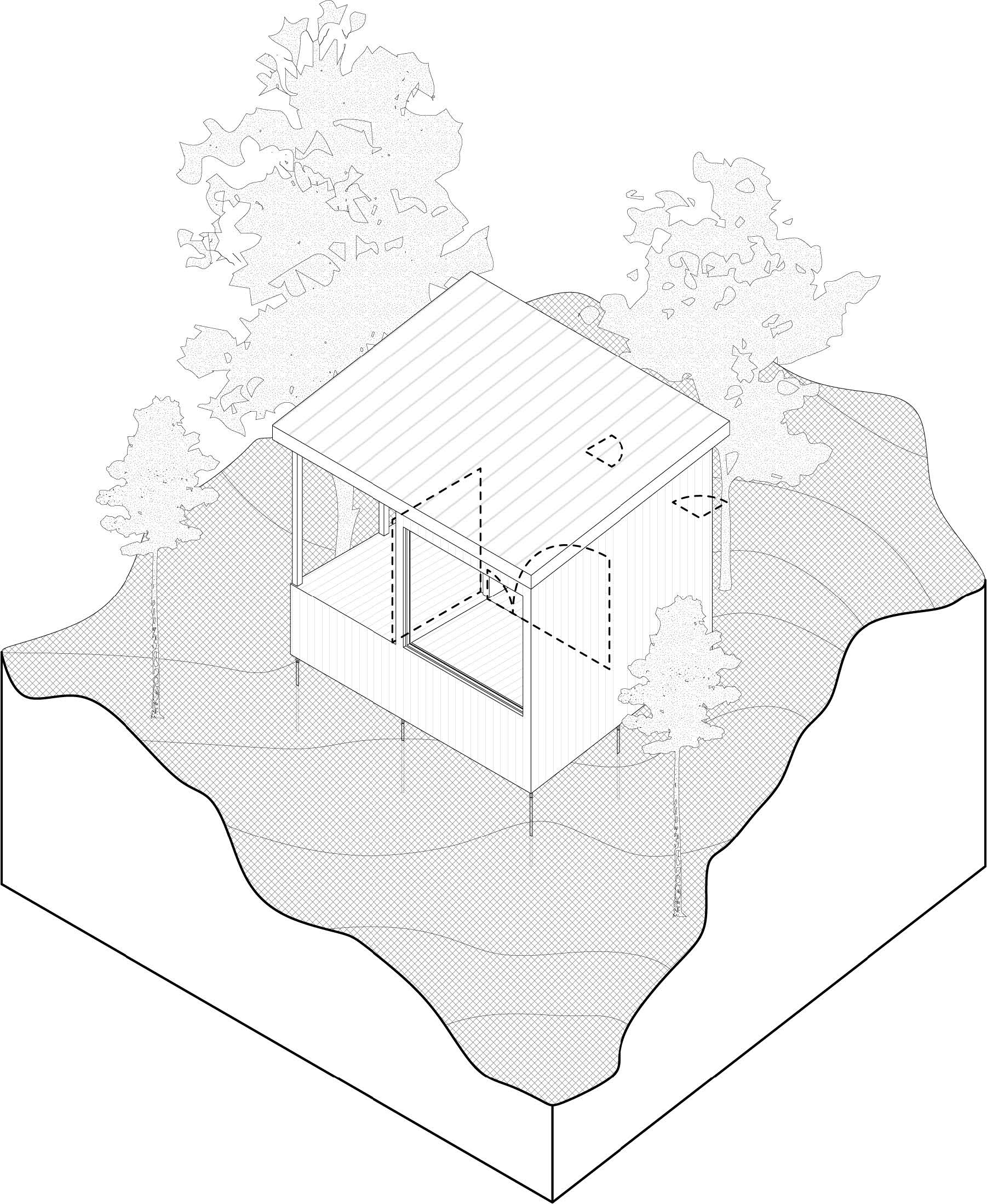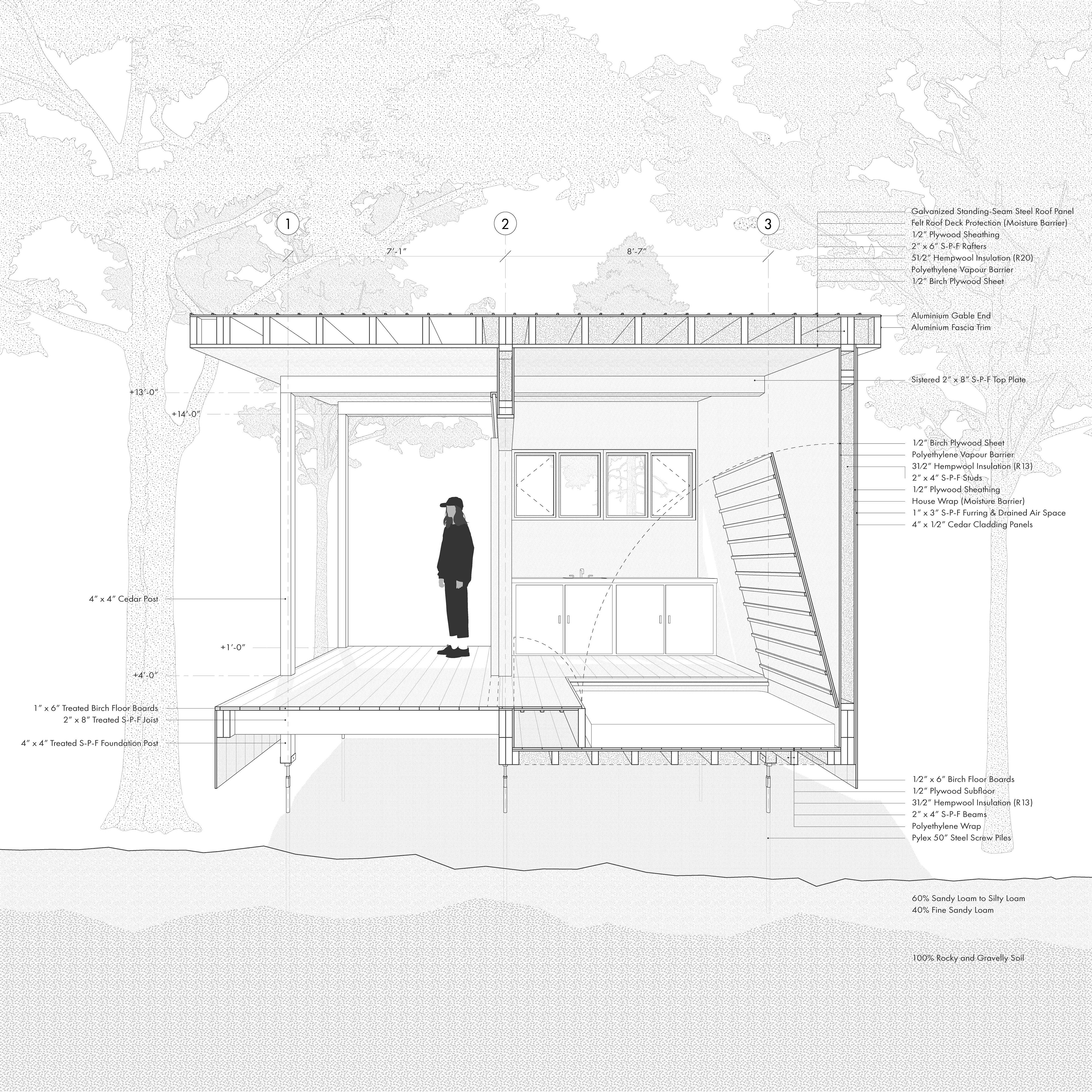 On March 16th, 2020, after my exchange semester at University College London was cut short due to the pandemic, I returned to Canada with a friend who quarantined with me at my family’s cottage in the Laurentian mountains of Quebec. Given that our summer internships were cancelled, we decided to use the opportunity to gain a more practical skill and understanding of architecture, by undertaking the design and construction of a small cabin in the woods.