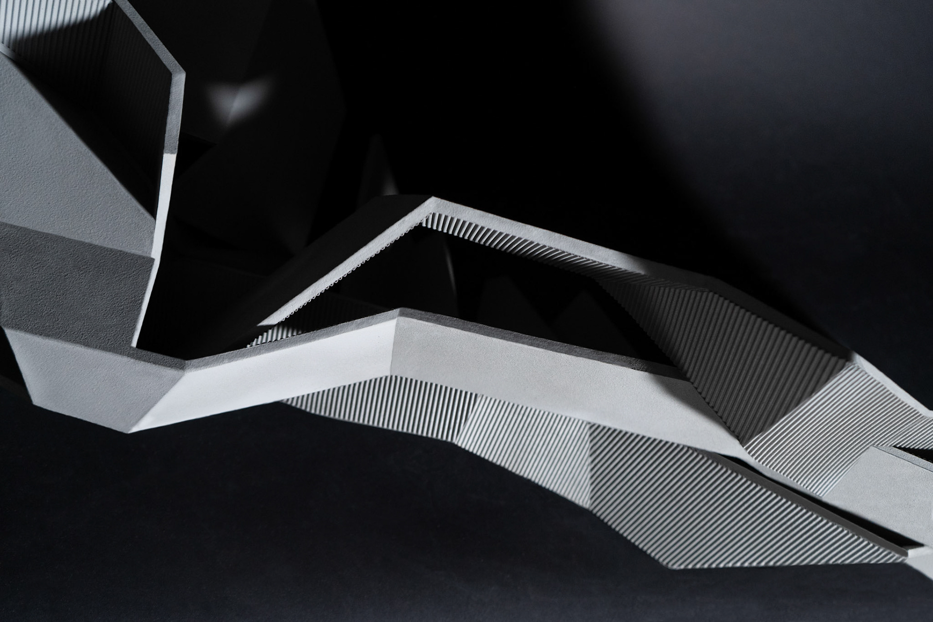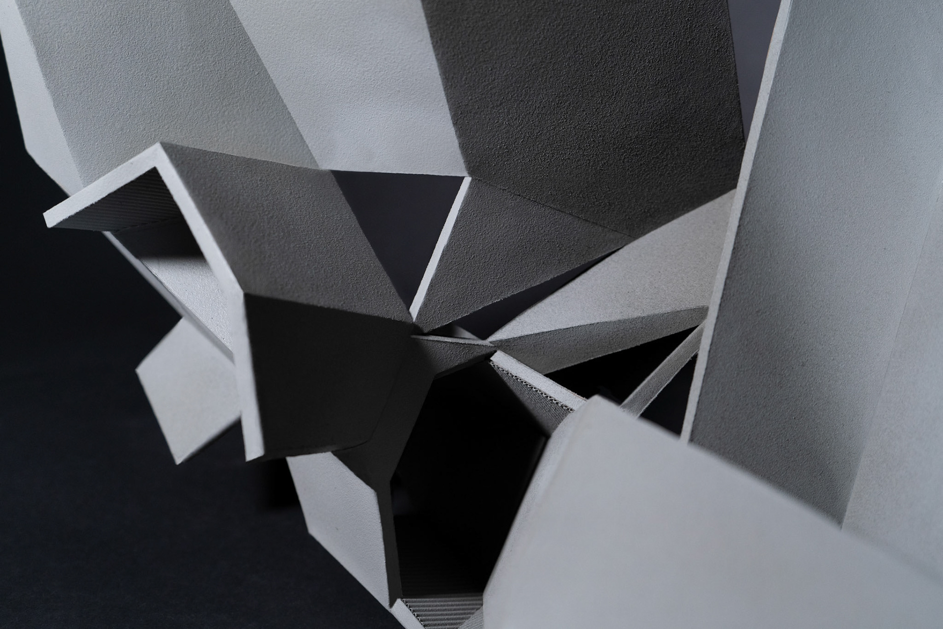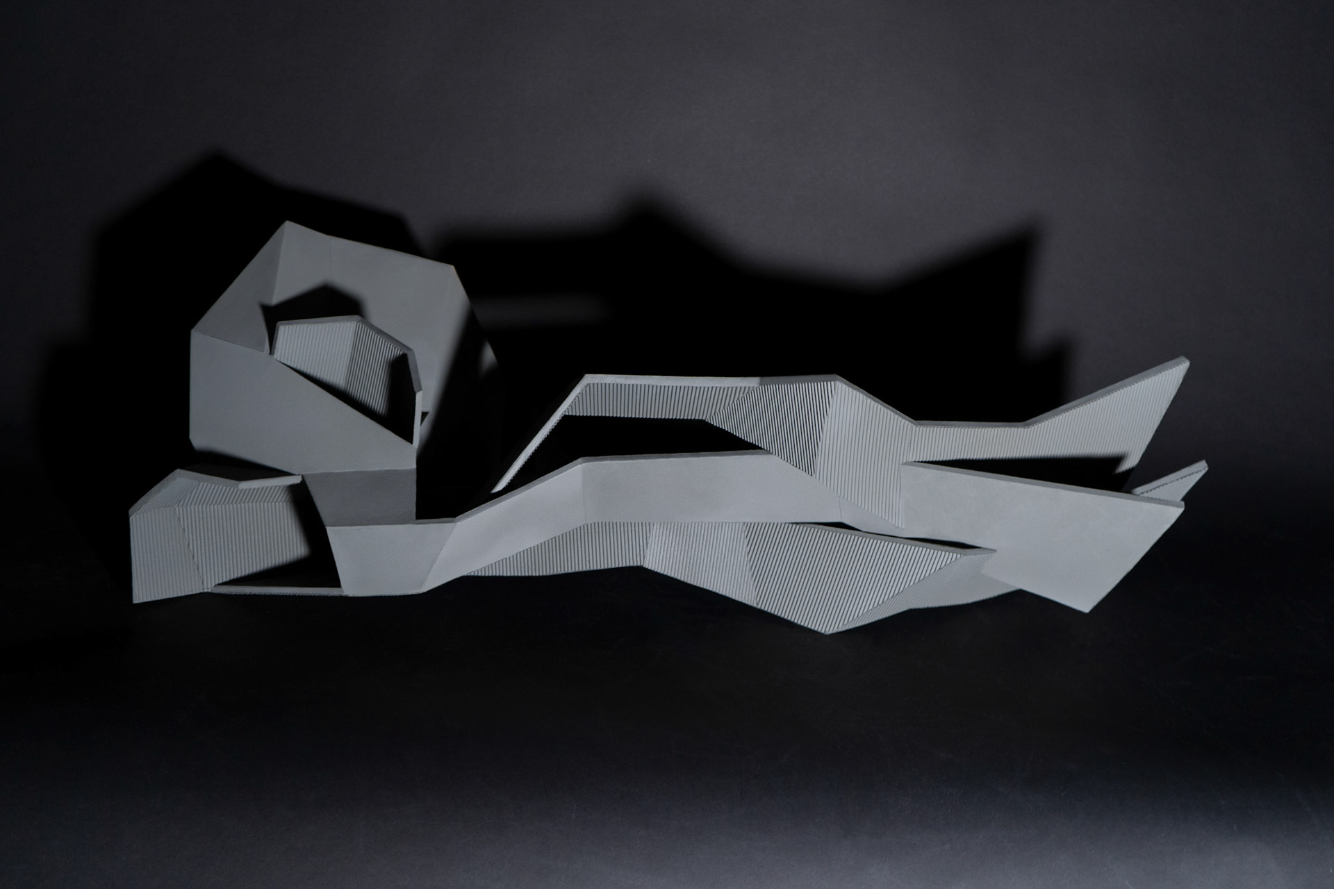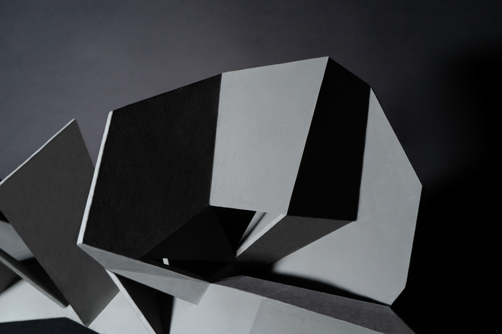 This project is an interpretive model of the Leacock Building on the McGill University downtown campus. The model explores light and shadow and is made to appear both heavy and weightless at the same time, like the Leacock Building itself. The many hexagonal forms that appear in the model are inspired by the architects' own use of these forms in their building's design, particularly in its plan, which contains almost exclusively 120° angles on the building's lower levels where students gather.