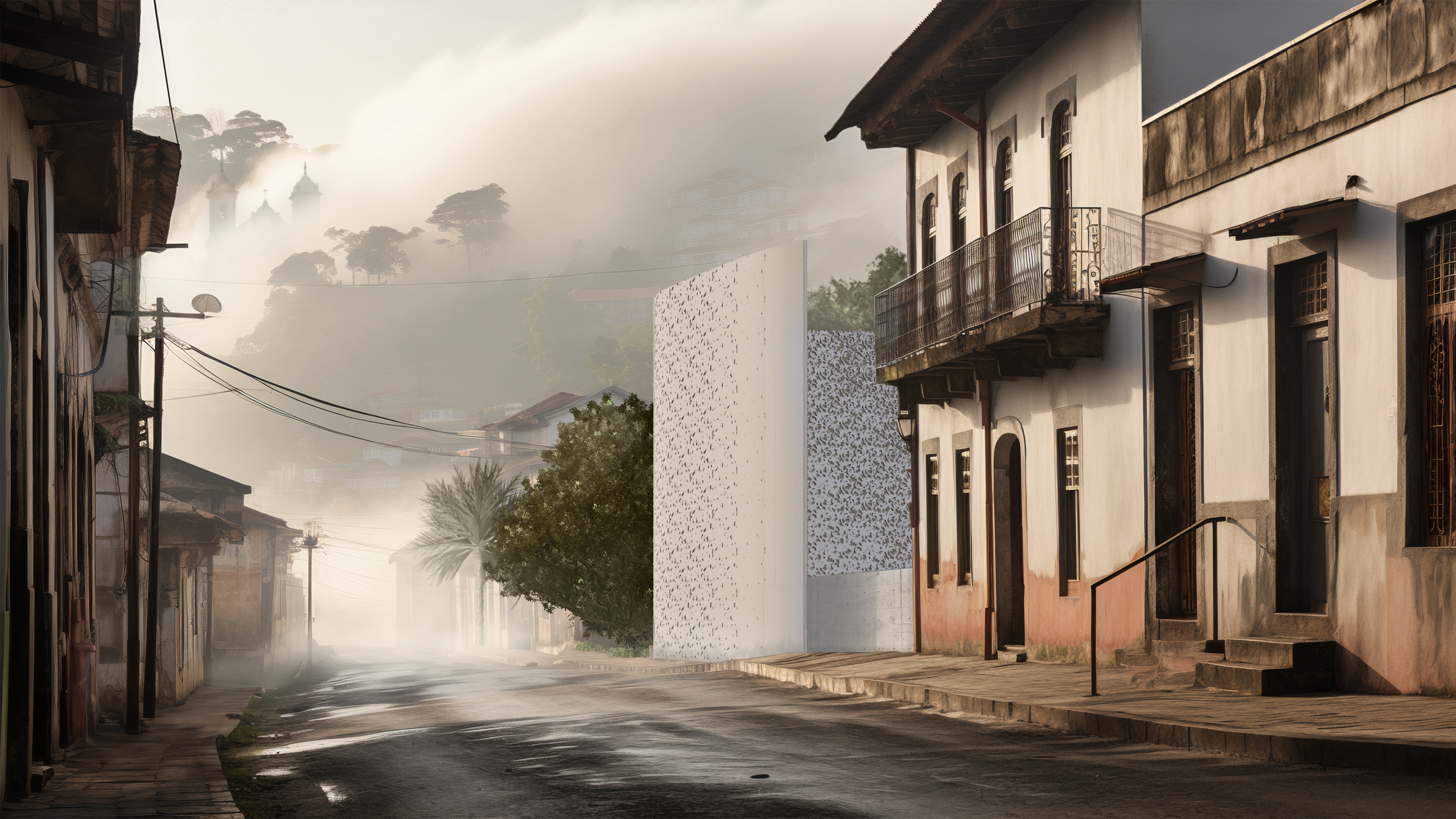 My Museum of Gold in Ouro Preto, set amid historic gold mines, contrasts sharply with its lavish counterpart in Bogota, Colombia, featuring a rather unassuming façade: a white ceramic scrim, 3 inches thick, in-line with the vernacular off-white stucco houses that line the street.