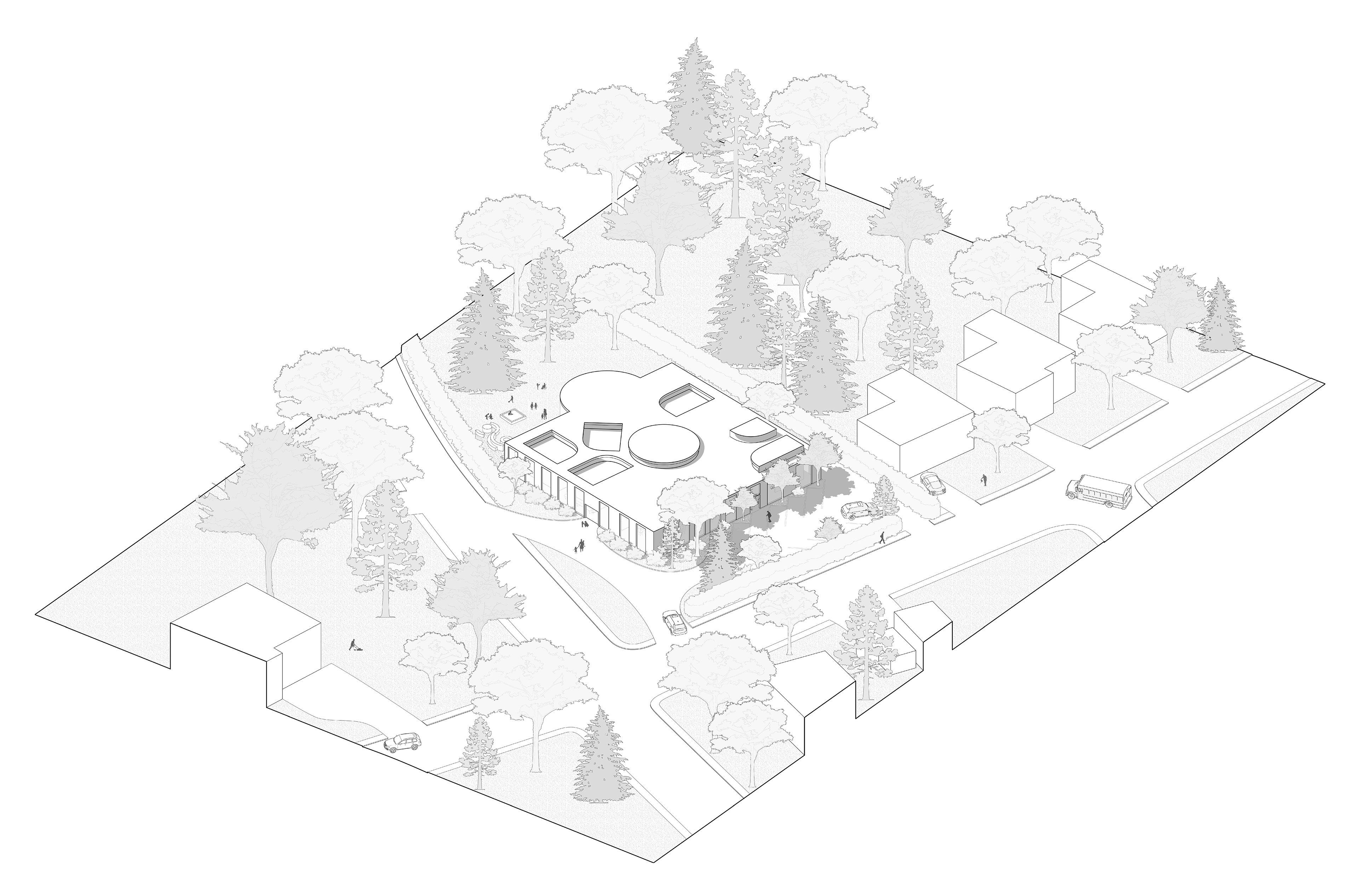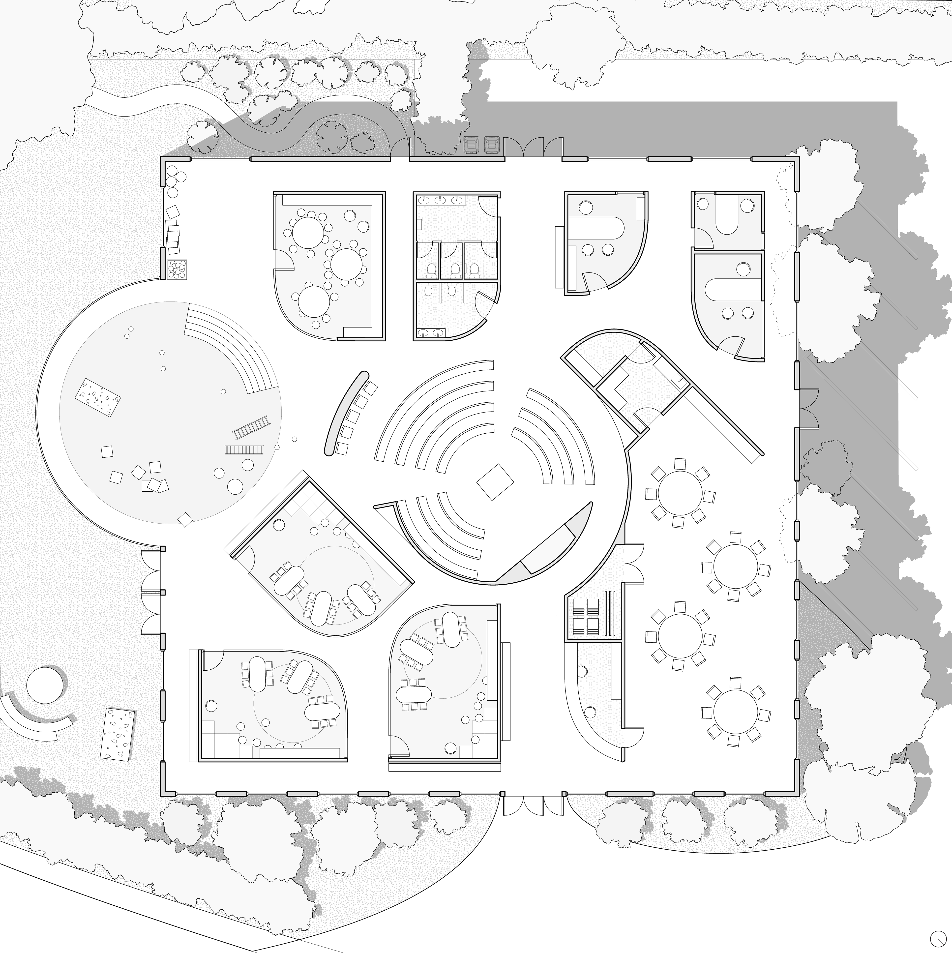 The resulting building is a small community reform synagogue and daycare center located in Westville, CT, backing a large piece of forested property owned by Yale.